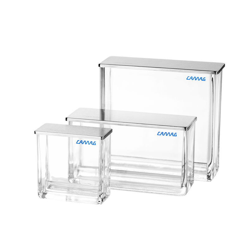 This is a classical developing tank for Thin-Layer Chromatography. Compared to a Twin-Trough-Chamber more solvent is needed. Also a Twin-Trough-Chamber reduces disposal problems and allows preconditioning of the plate with any solvent and for any duration.
